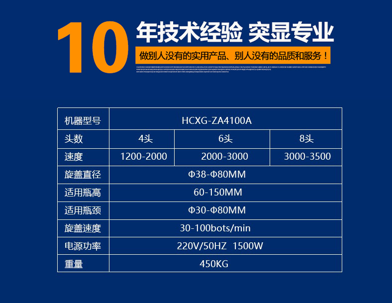 6.旋蓋機構高度可快速調節(jié),可適用相同口徑、不同高度的瓶子旋蓋;更換部分零件即可實現(xiàn)不同瓶徑、不同口徑的旋蓋,更換快捷方便。