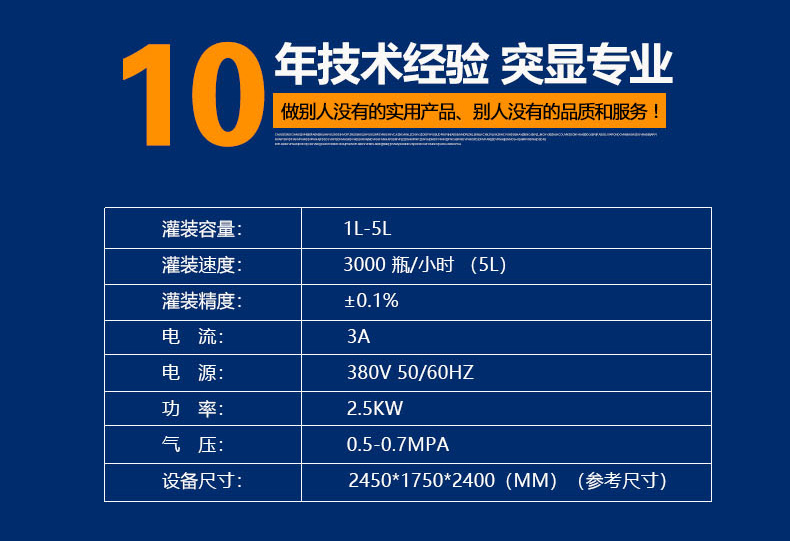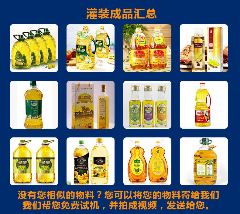 該系列灌裝機采用流量計式計量灌裝原理,多項認證,適用于各種規(guī)格(1-5升)的南瓜籽油、榛子油、牡丹籽油、芝麻油、核桃油、山茶油