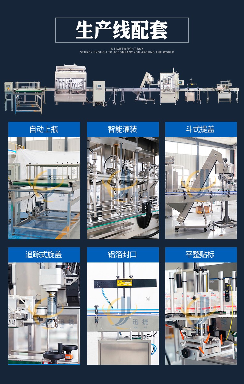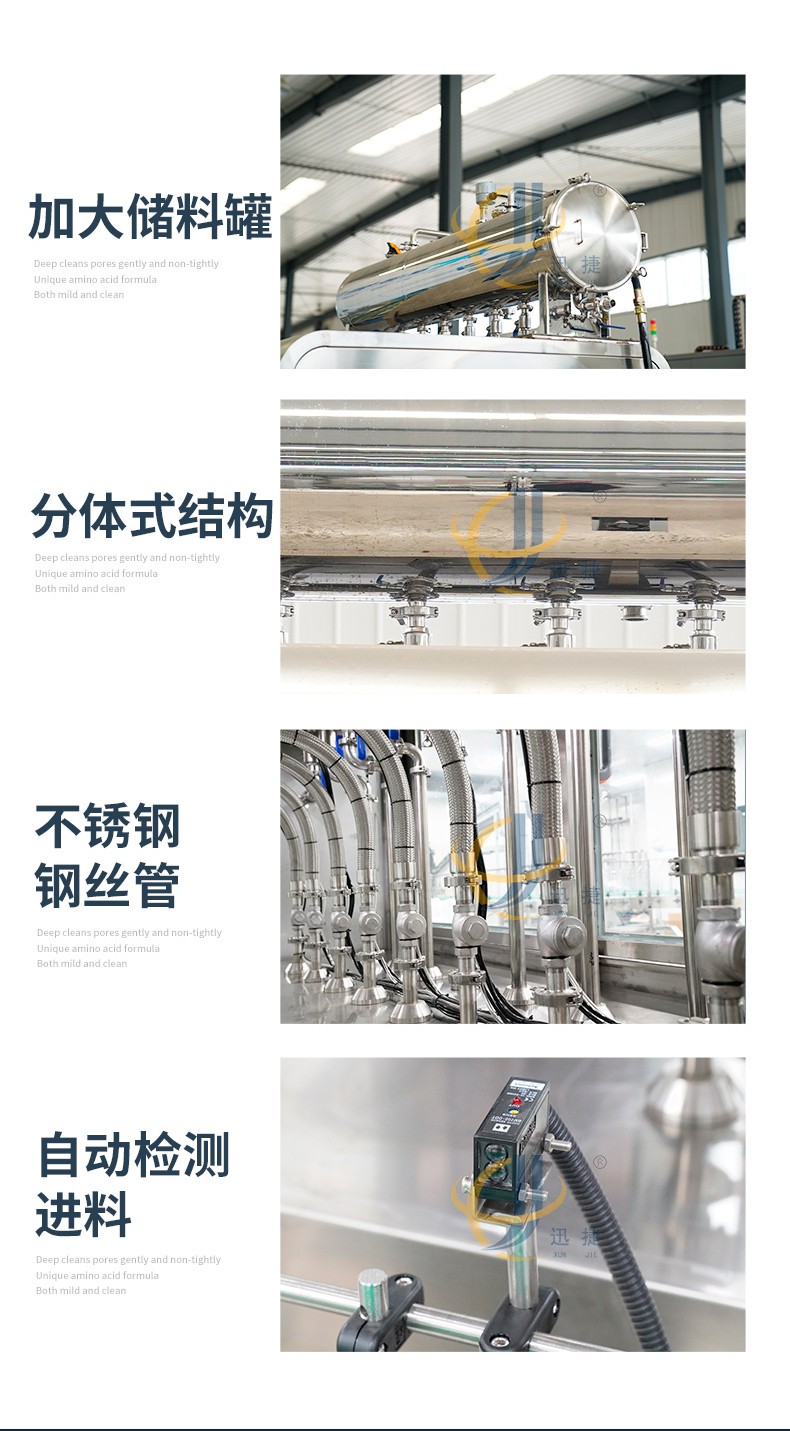 全自動液體灌裝機迅捷_01.jpg全自動液體灌裝機用于灌裝飲料、果汁,牛奶,酒精,消毒液,口服液,洗衣液等液體,廣泛應(yīng)用于食品,化工,醫(yī)療等行業(yè),灌裝精密,功能強,實用性高的灌裝機械。