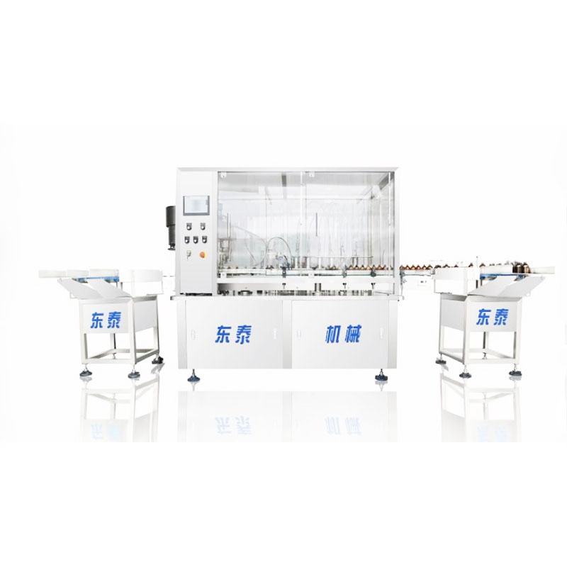 西林瓶(penicillin bottle),又稱:硼硅玻璃或鈉鈣玻璃管制(模制)注射劑瓶,是一種膠塞封口的小瓶子。早期盤尼西林多用其盛裝,故名西林瓶。西林瓶灌裝的多為液體,藥品、營(yíng)養(yǎng)液等,針對(duì)這種小瓶型液體灌裝,機(jī)械廠家制造出小計(jì)量液體灌裝機(jī)來幫助液體灌裝的灌裝和生產(chǎn),小計(jì)量液體灌裝機(jī)也叫作西林瓶灌裝旋蓋一體機(jī),小計(jì)量液體灌裝機(jī)屬于聯(lián)動(dòng)機(jī),其工作步驟包含了理瓶、灌裝、理蓋。掛蓋。壓蓋、旋蓋的步驟,滿足了液體包裝的大部分步驟,那么液體灌裝機(jī)該如何選擇呢?