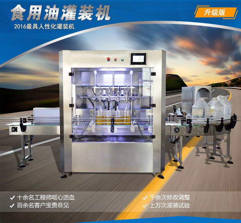 使用范圍:該全自動油類灌裝機主要適用于玉米油產(chǎn)品不規(guī)則盛裝容器進行有效的灌裝包裝,可以說是玉米油專屬的灌裝機械。除此之外該設備還可以對其他跟玉米油品質(zhì)相近的食用油產(chǎn)品進行灌裝,例如橄欖油,花生油,菜籽油,葵花油,豆油,調(diào)和油,色拉油,辣椒油,植物油灌裝機,甘油,玫瑰精油的等產(chǎn)品進行自動灌裝。